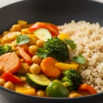 El curry vegetal con garbanzos es la opción perfecta para quienes desean una alimentación balanceada, variada y llena de nutrientes esenciales. Los garbanzos aportan fibra y proteínas de origen vegetal, mientras que las verduras frescas y la cúrcuma aseguran un aporte elevado de vitaminas, minerales y antioxidantes. Esta combinación no solo es saludable sino también reconfortante y versátil, ideal tanto para comidas principales como para cenas ligeras.