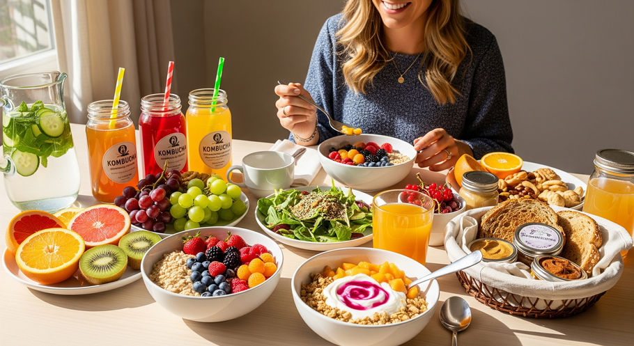 - Alimentos fermentados: Yogur natural, kéfir, chucrut, kombucha y kimchi aportan probióticos que repueblan el intestino de microorganismos sanos.